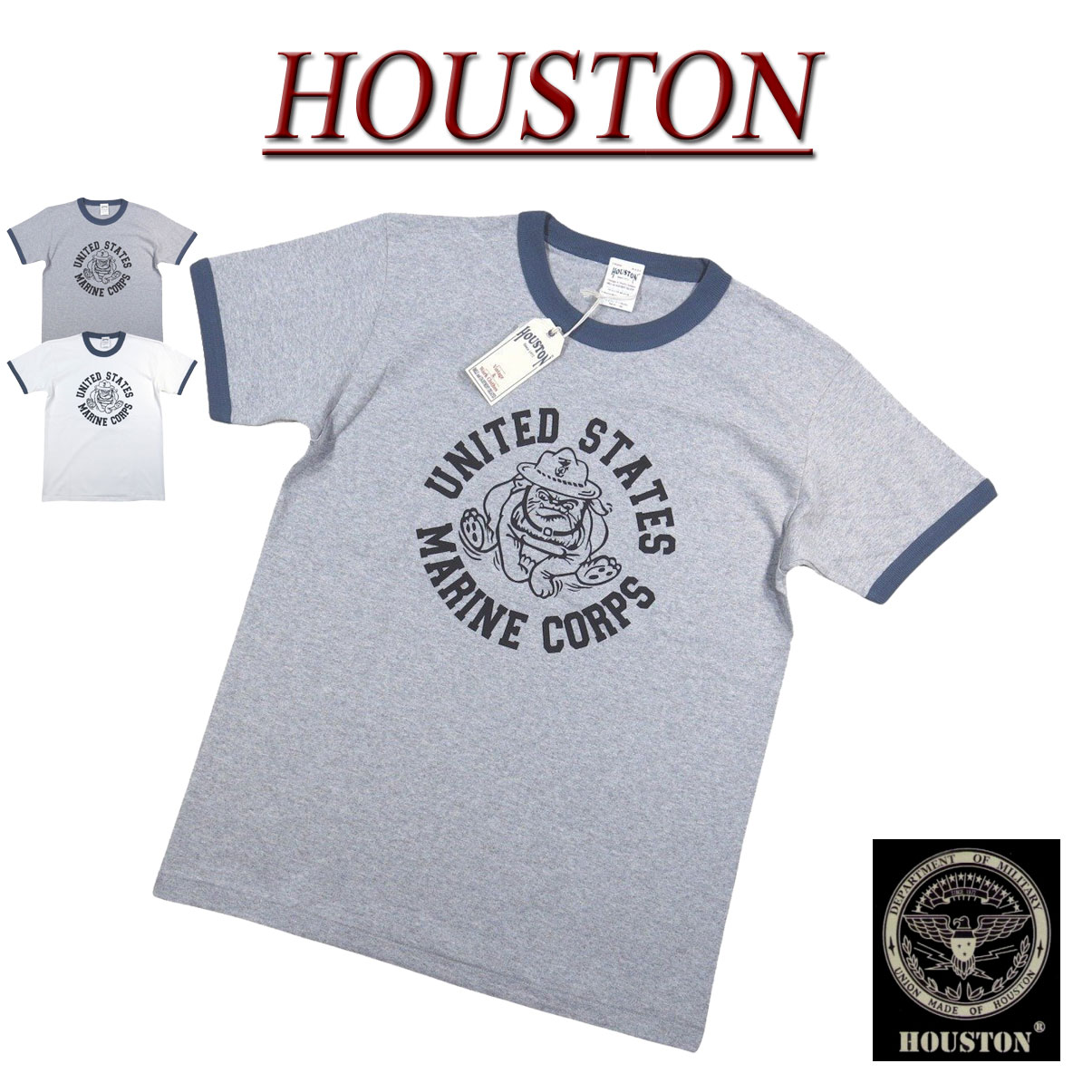 【2色4サイズ】 jh011 新品 HOUSTON USMC BULLDOG マリーンコープ ミリタリー 半袖 リンガーTシャツ 22206 メンズ ヒューストン USMC BULLDOG SHORT SLEEVES T-SHIRT ティーシャツ アメカジ 【smtb-kd】