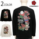 CHIGIRI ちぎり 花札 刺繍風プリント 柄 和柄 インクジェットプリント 長袖Tシャツ ( CHL57-653 ) 和柄 長袖 Tシャツ カットソー 契り 刺青 花札 インクジェット プリント 2色展開 ブラック ホワイト 送料無料