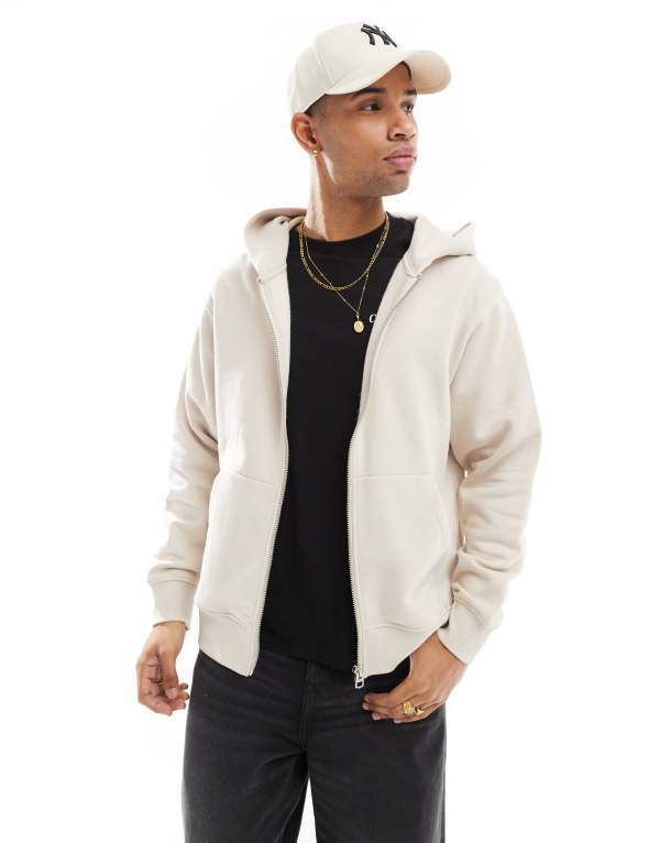 ジャック アンド ジョーンズ メンズ アウター パーカー・スウェット パーカー Jack & Jones oversized 400gsm heavyweight zip hoodie in cream Moonbeam クリーム