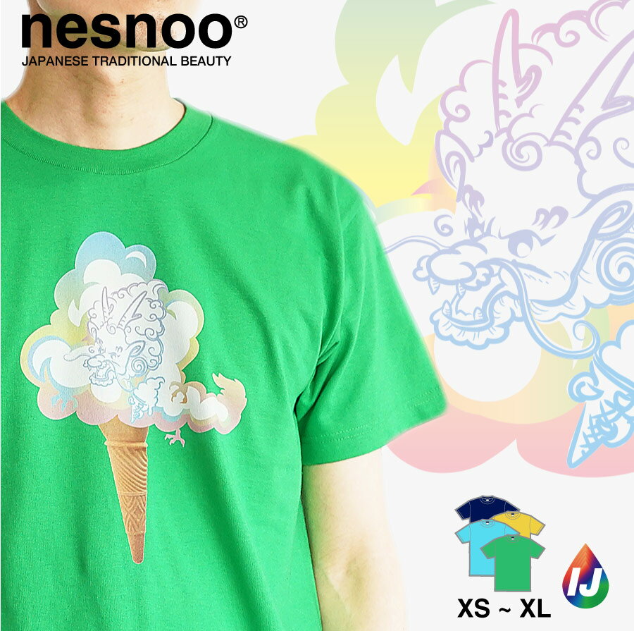 【楽天スーパーSALE50%OFF】 nesnoo tシャツ UNRYUCREAM 和柄 半袖 龍 カットソー かわいい ポップ カラフル アイスクリーム ソフトクリーム シンプル メンズ レディース ユニセックス 服 S M L XL 丈夫 カジュアル 幸運 春服 春 夏服 夏 ブランド 模様 イラスト 絵