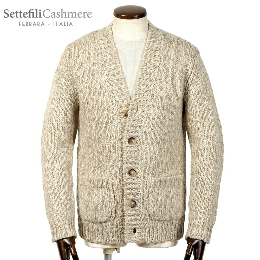 【ポイント10倍】【SALE】セッテフィーリ カシミア Settefili Cashmere / 【国内正規品】 / ウールアルパカ3ゲージVネックニットカーディガン「RACRECA」(ベージュメランジ)/ 秋冬 メンズ イタリア セーター ローゲージニット