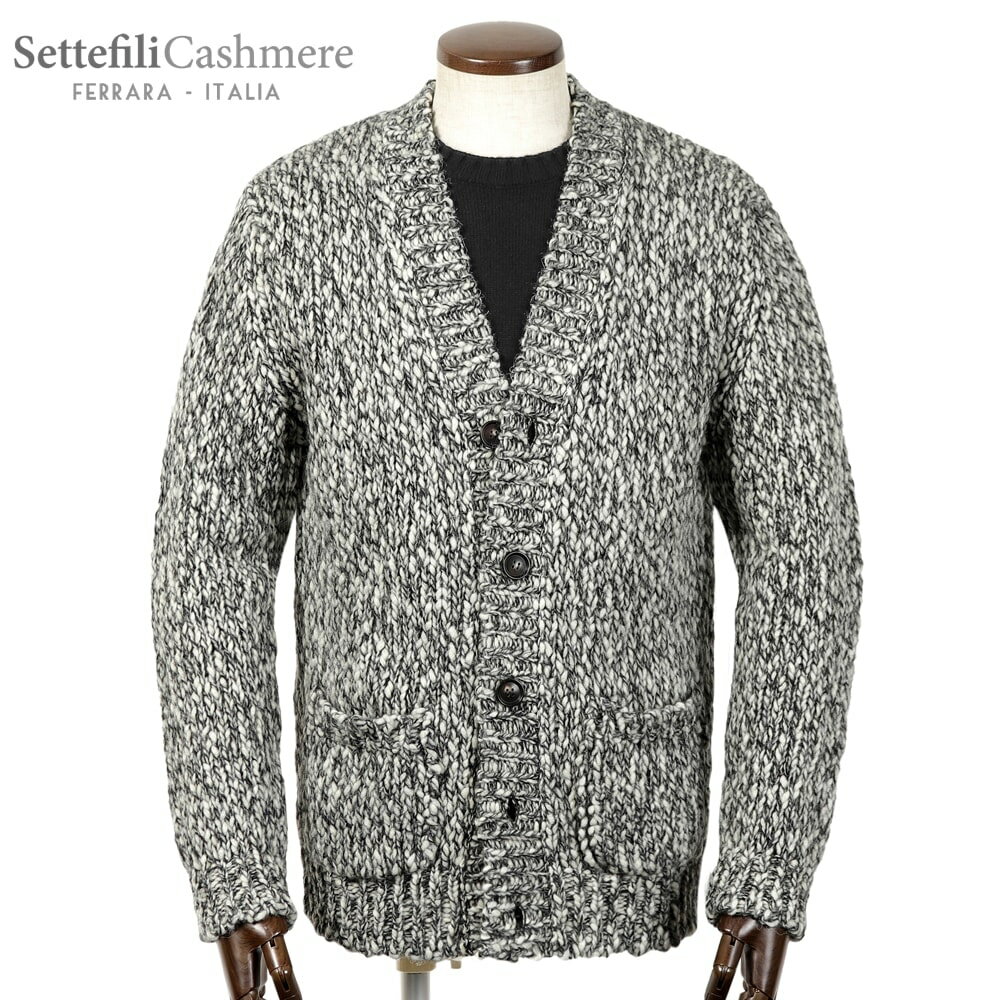 【ポイント10倍】【SALE】セッテフィーリ カシミア Settefili Cashmere / 【国内正規品】 / ウールアルパカ3ゲージVネックニットカーディガン「RACRECA」(ブラックメランジ)/ 秋冬 メンズ イタリア セーター ローゲージニット