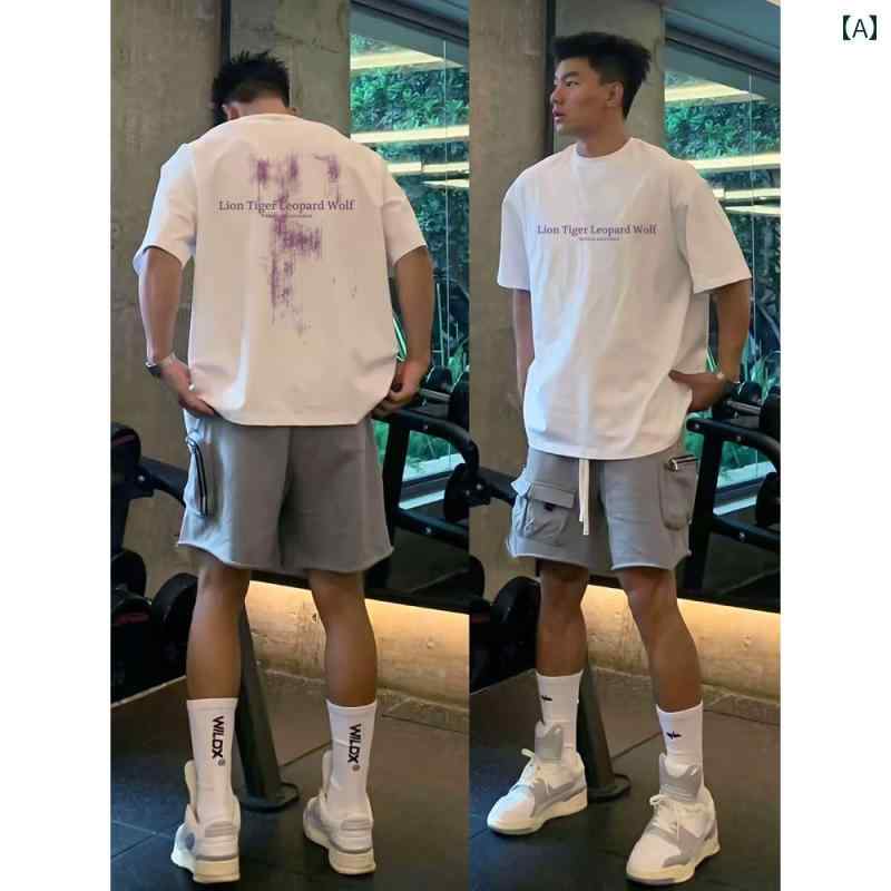 ストリート スタイル Tシャツ と アメリカ 西 海岸の ストリートの オーバー サイズ 半袖 Tシャツ メンズ 夏の 厚手 綿の ファッションの 小さい 襟の トップス