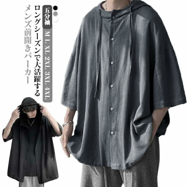 五分袖 メンズ tシャツ パーカー 薄手 前開き トップス フード付き ストリート系 カーディガン 半袖 夏服 ライトアウター 五分袖 サマーパーカー カジュアル おしゃれ 大きいサイズ ゆったり 体型カバー 学生 無地 シンプル
