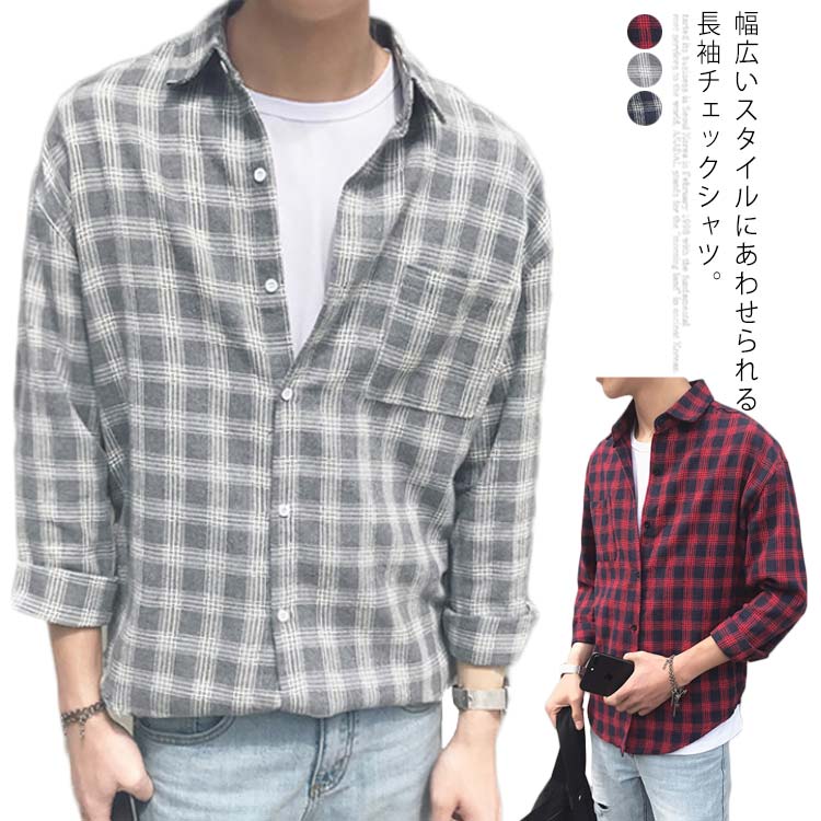 送料無料 シャツ チェックシャツ メンズ 長袖シャツ カジュアルシャツ 長袖 チェック柄 トップス 薄手 ゆったり ゆるシャツ 前開き 折り襟 体型カバー お洒落 カジュアル リラックス カラフル 学生 通勤 お出かけ 春秋