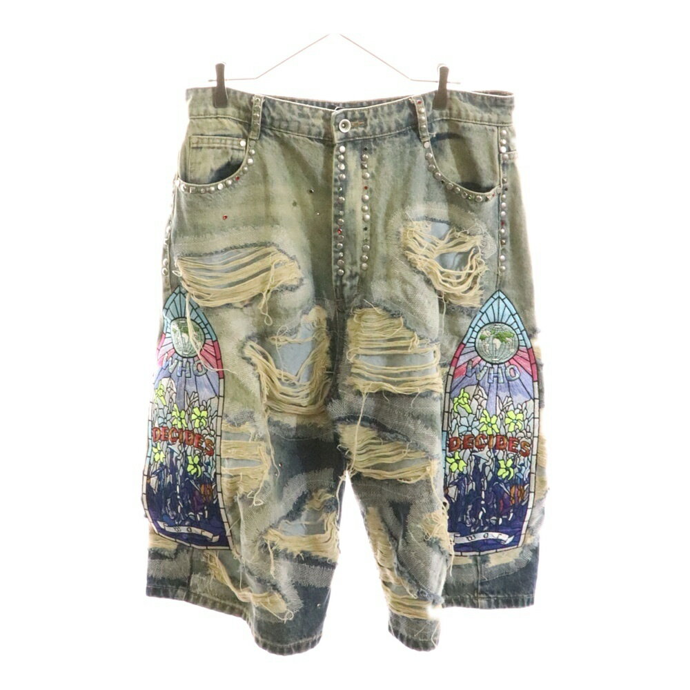 WHO DECIDES WAR(フーディサイズウォー) サイズ:34 Chrome Stud Embroidered Short クロム スタッド ショーツ ハーフパンツ インディゴ【中古】【程度B】【カラーブルー】【取扱店舗原宿】