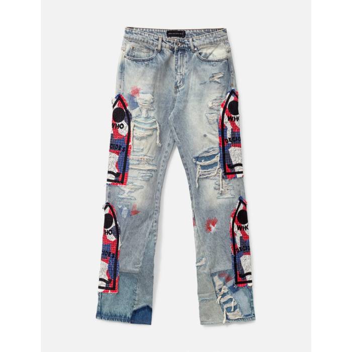 Who Decides War 【 Motif Patched Denim Men Black 】 デニム メンズファッション ズボン パンツ メンズ 黒色 ブラック