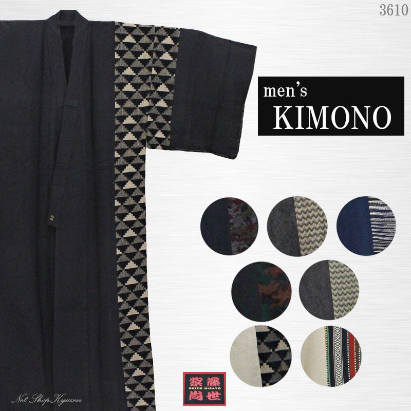 着物 メンズ 単品 綿 ベージュ 黒色 灰色 ベージュ 縞 ストライプ 鱗 迷彩 ギザギザ ブランド 男性 men's 男性用 紳士 男 デザイナー 紫藤尚世 SHITO HISAYO