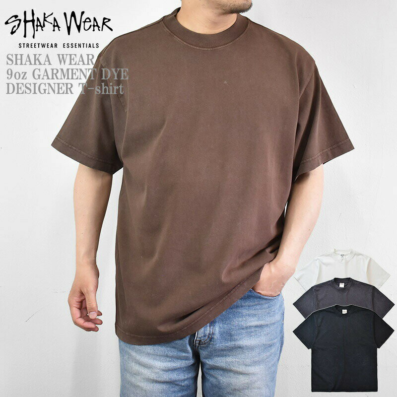 SHAKA WEAR シャカウェア 9oz GARMENT DYE DESIGNER T-shirt 9オンス ガーメントダイ デザイナー クルーネック Tシャツ 半袖 製品染め メンズ レディース ユニセックス ホワイト ブラック