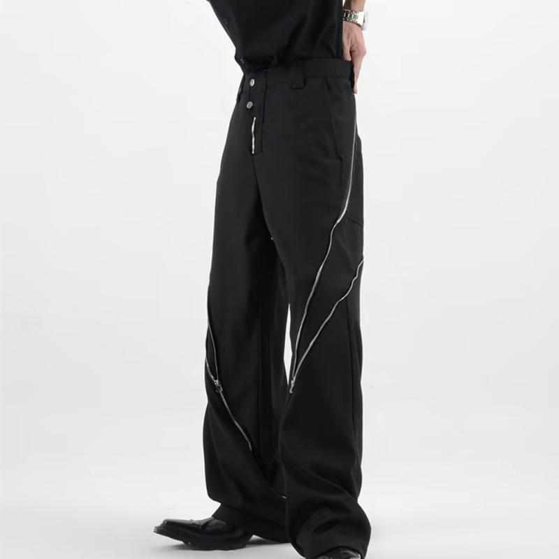 パンツ 男性用 9分丈 ストレートパンツ ブラック 高街 カーゴパンツ ジッパー hiphop 伸縮性 普段使い リラックス ウェア