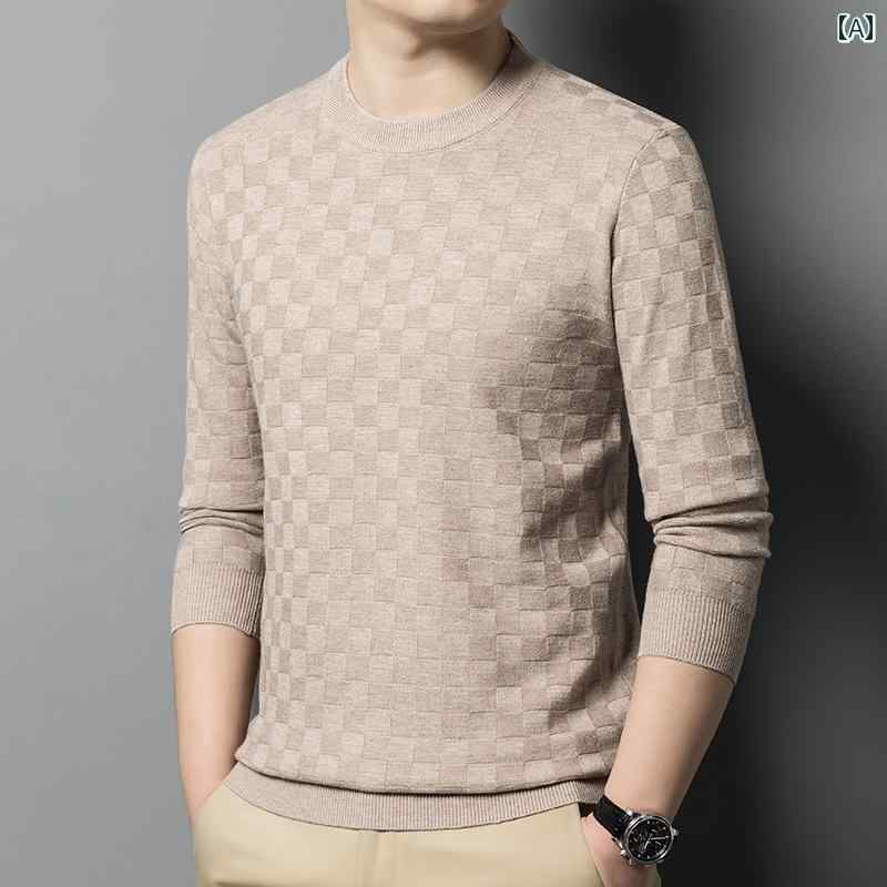 メンズ 長袖 トップス カットソー Tシャツ ラウンドネック 無地 ニット セーター 秋 トップ スジャ カード レイヤリング シャツ