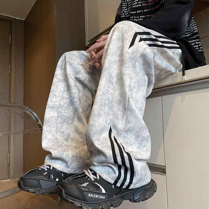 秋冬 メンズ 服 シンプル ファッション オシャレ 大人 かっこいい 大きいサイズ ストリート 紳士服 ストライプ タイダイ柄 ダーティー パンツ 秋 アメリカン レトロ スポーツ ワイド レッグ カジュアル