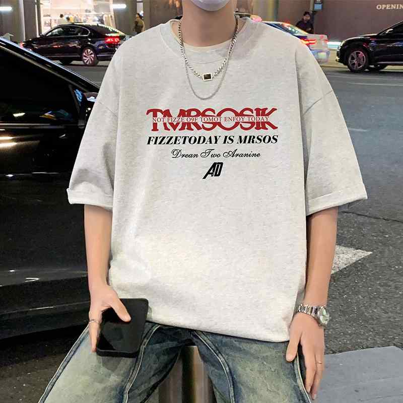 ・スタイル: カジュアル・フィット: ルーズフィット・素材: 綿100%・ネックライン: クルーネック・袖丈: 半袖・袖タイプ: ドロップショルダー・着丈: レギュラー・厚さ: 通常・シーン: 日常・カラー展開: ダークグレー、ブラック、ホワイト、ライトグレー・サイズ展開: M、L、XL、2XL、3XL、4XL、5XL