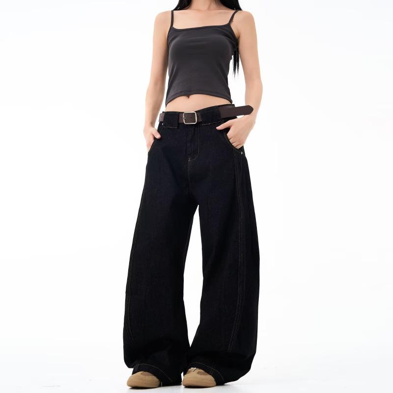 デニムパンツ メンズ 男性用 アメリカン ブラック ストレート ルーズフィット ゆったり ミッドライズ レトロ カジュアル ストリート コットン ウォッシュ加工 ユーズド加工 伸縮性 ジーンズ
