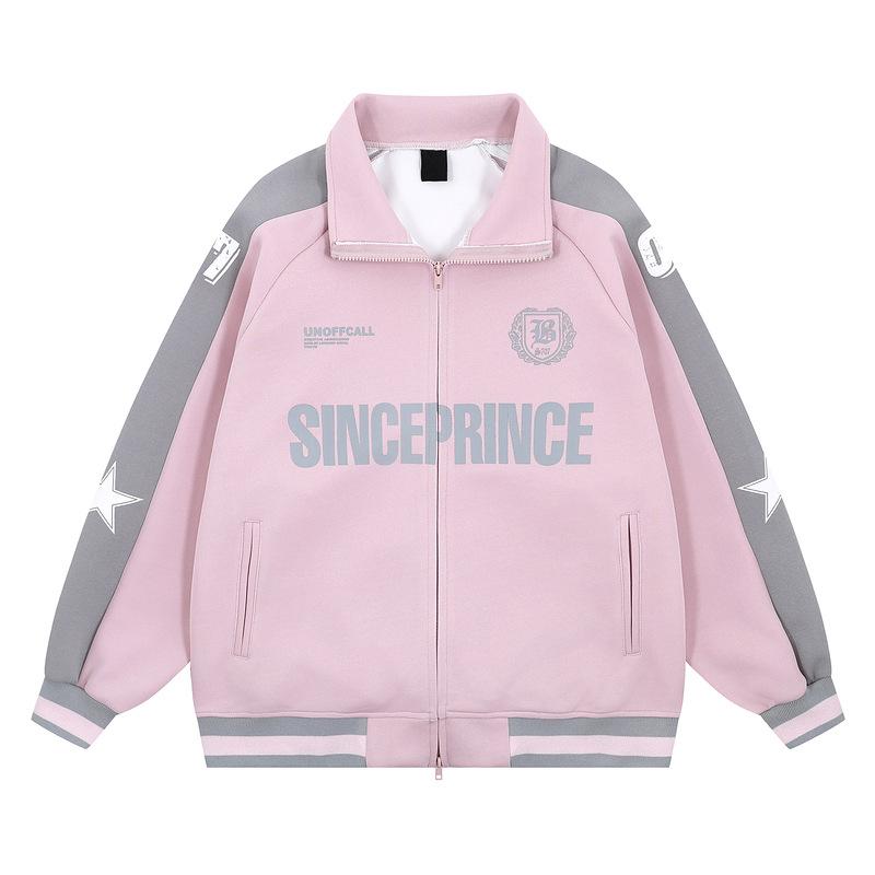 ジャケット メンズ レディース ユニセックス ストリート系 ルーズフィット 切り替え ロゴプリント スタンドカラー ジップアップ ブルゾン コットン カジュアル アウター 春秋