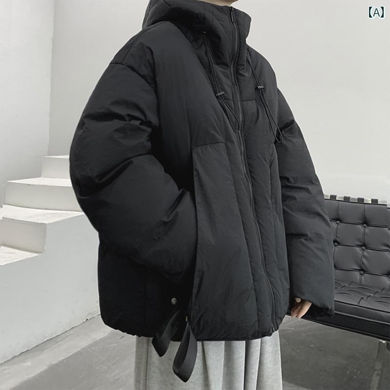 ・カテゴリ: 中綿ジャケット・スタイル: カジュアル・対象: 若者・対象年齢: 成人・性別: メンズ・主な素材: 綿10%・裏地素材: 苧麻10%・開閉: ボタンフロント・前立て: シングルボタン・フード: 付き・厚さ: 普通・シルエット: ルーズフィット・ポケット: サイドシームポケット・加工: プリーツ・デザイン詳細: ジャカード・着用シーン: カジュアル・カラー展開: ブラック、ネイビー、ダークレッド・サイズ展開: M、L、XL