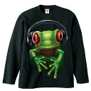 カエル かえる 蛙 フロッグ 長袖 tシャツ【ロングスリーブ】ロンティー 丸首型 クルーネック 綿100% トップス 服 レディース メンズ シンプル かわいい おしゃれ ドッグ 犬 犬柄 爬虫類 両生類プリント カエルグッズ ビッグプリント djフロッグ ヘッドフォン