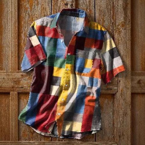・カテゴリ: シャツ・スタイル: 大人カジュアル・主な素材: ポリエステル96%以上・襟: 襟付き・袖丈: 半袖・柄: チェック・厚さ: 普通・シルエット: レギュラーフィット・着用シーン: カジュアル・着用シーズン: 夏・加工: デジタルプリント・生地の番手: 40番手・対象: 大人・性別: メンズ・サイズ展開: S、M、L、XL、2XL、3XL、4XL、5XL