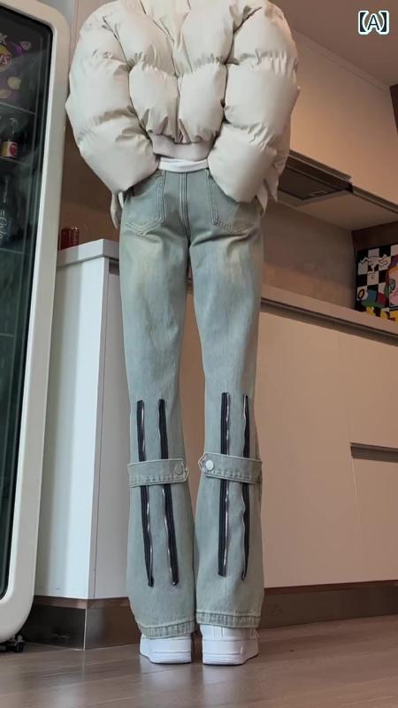 メンズ ストリート パンツ アメリカン レトロ イエロー 泥 染め ジーンズ スリム ストレート パンツ