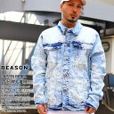 REASON アウター 冬 長袖 Gジャン デニムジャケット メンズ 春秋冬用 インディゴライトブルー 大きいサイズ リーズン ジージャン ライトアウター おしゃれ かっこいい 総柄 ペイズリー柄 ウォッシュ b系 ヒップホップ ファッション ストリート系 ハイ ブランド 服 21秋冬 DN1