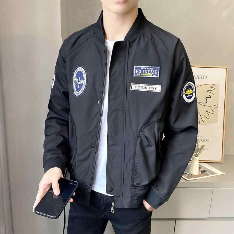 ジャケット メンズ 男性用 スタジャン ブルゾン アウター トップス MA-1 ジャンパー 野球 襟付き ジップアップ ポリエステル 防風 通気性 無地 黒 白 緑 ベージュ 秋