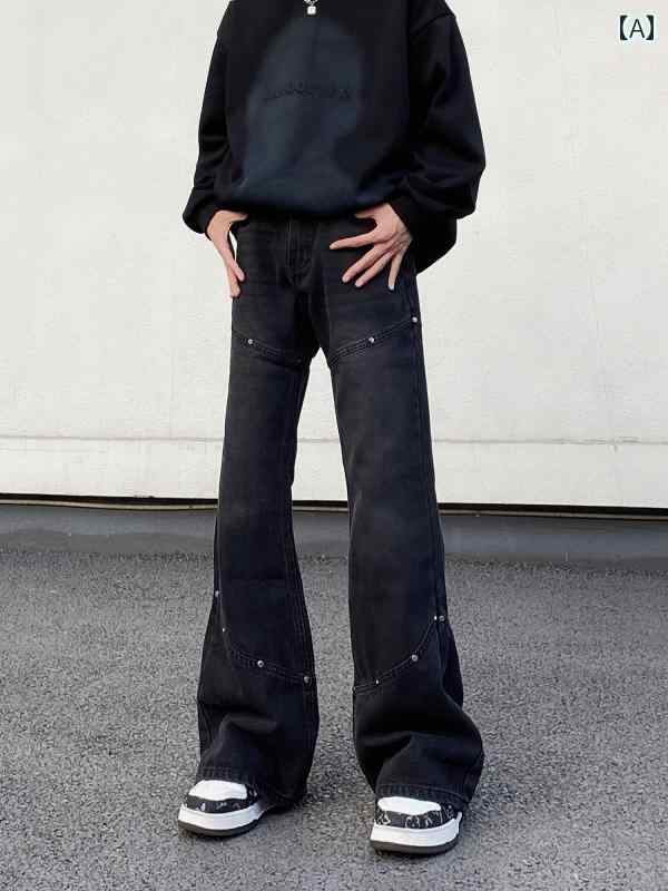 フレア パンツ 男性用 でない 限り 大通りには 近づかないでください。 メンズ アメリカン レトロ ウォッシュド ジーンズ ゆったり わずかに フレアの ある ワイド レッグの クリーン フィット フロア レングス パンツです。