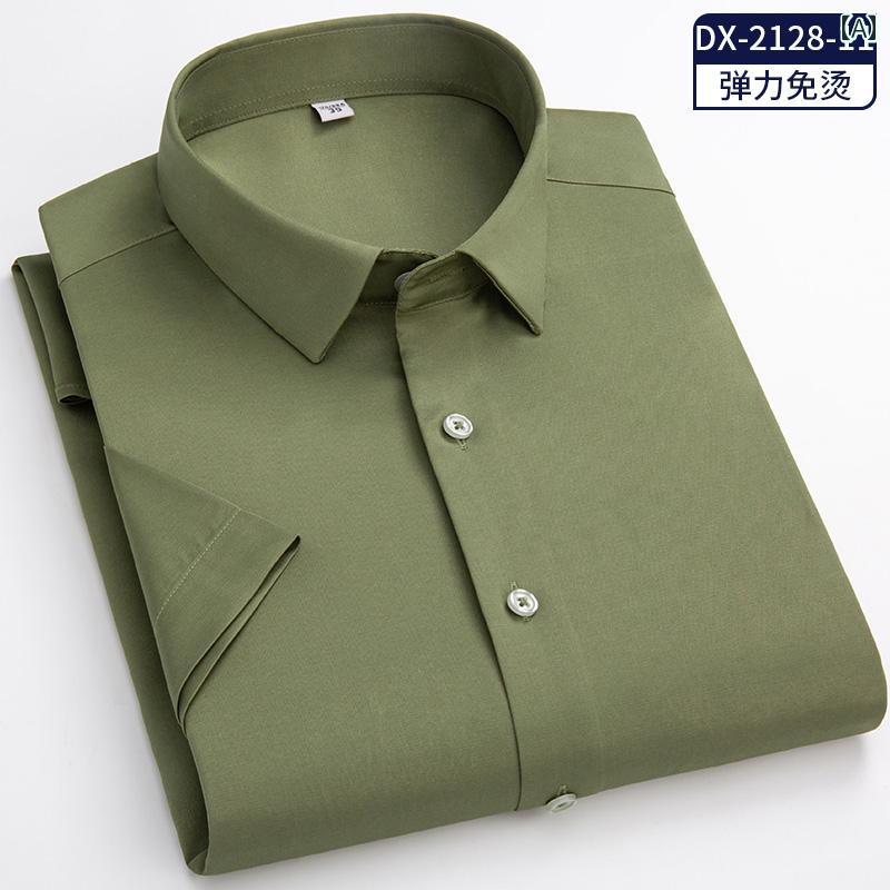メンズ ミリタリー シャツ ミリタリーグリーンの アイロン フリー シャツ 冷感 伸縮性の ある フェイク の 半袖 メンズ 若見え ビジネス プロな 作業着