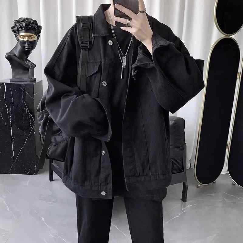 ジャケット 男性用 デニム ブラック 春秋 薄手 耐摩耗 長袖 ルーズフィット