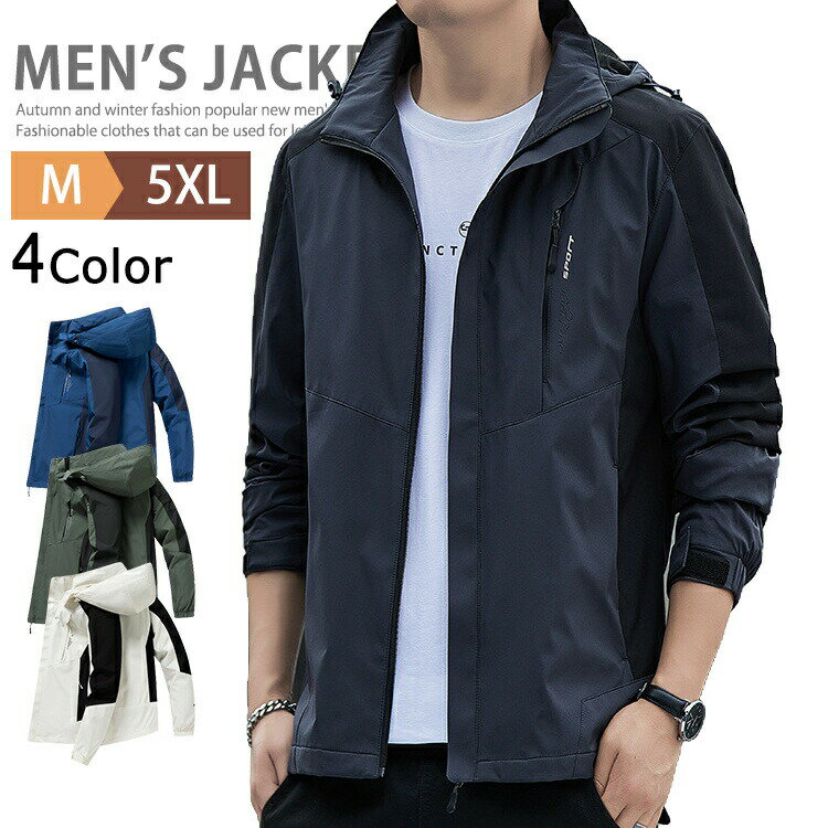 マウンテンパーカー マンパ アウター メンズ 大きいサイズ 防風 撥水 ウインドブレーカー スタンド ブルゾン ジャケット ゴルフウェア フード付き スポーツ ストリート アウトドア ハイキング ランニング カジュアル 自転車 山登り 釣り 薄手 大人