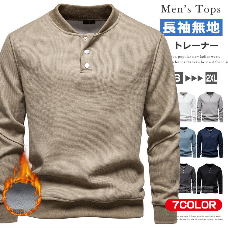裏起毛 トレーナー メンズ 長袖 ヘンリーネック スウェットトレーナー トップス ワッフル 無地 プルオーバー カジュアル ルームウェア スポーツ おしゃれ 長袖トレーナー 秋 秋服 秋冬 スウェット 大人 暖かい 防寒 スエット 秋 冬