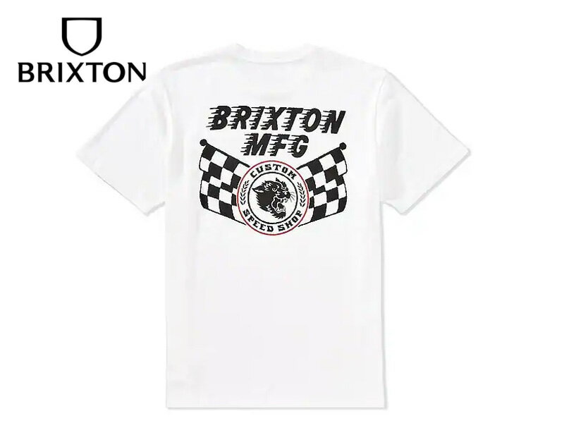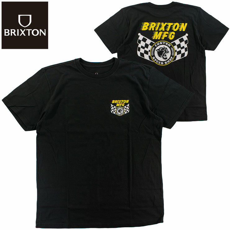 DOLAN STEARNSやKENNY ANDERSON等所属でお馴染みのブリクストン。 大胆なバックプリントが、ストリートとヴィンテージを融合。チェッカーフラッグロゴTシャツ。 Lサイズ 着丈約:72cm 身幅約:58cm