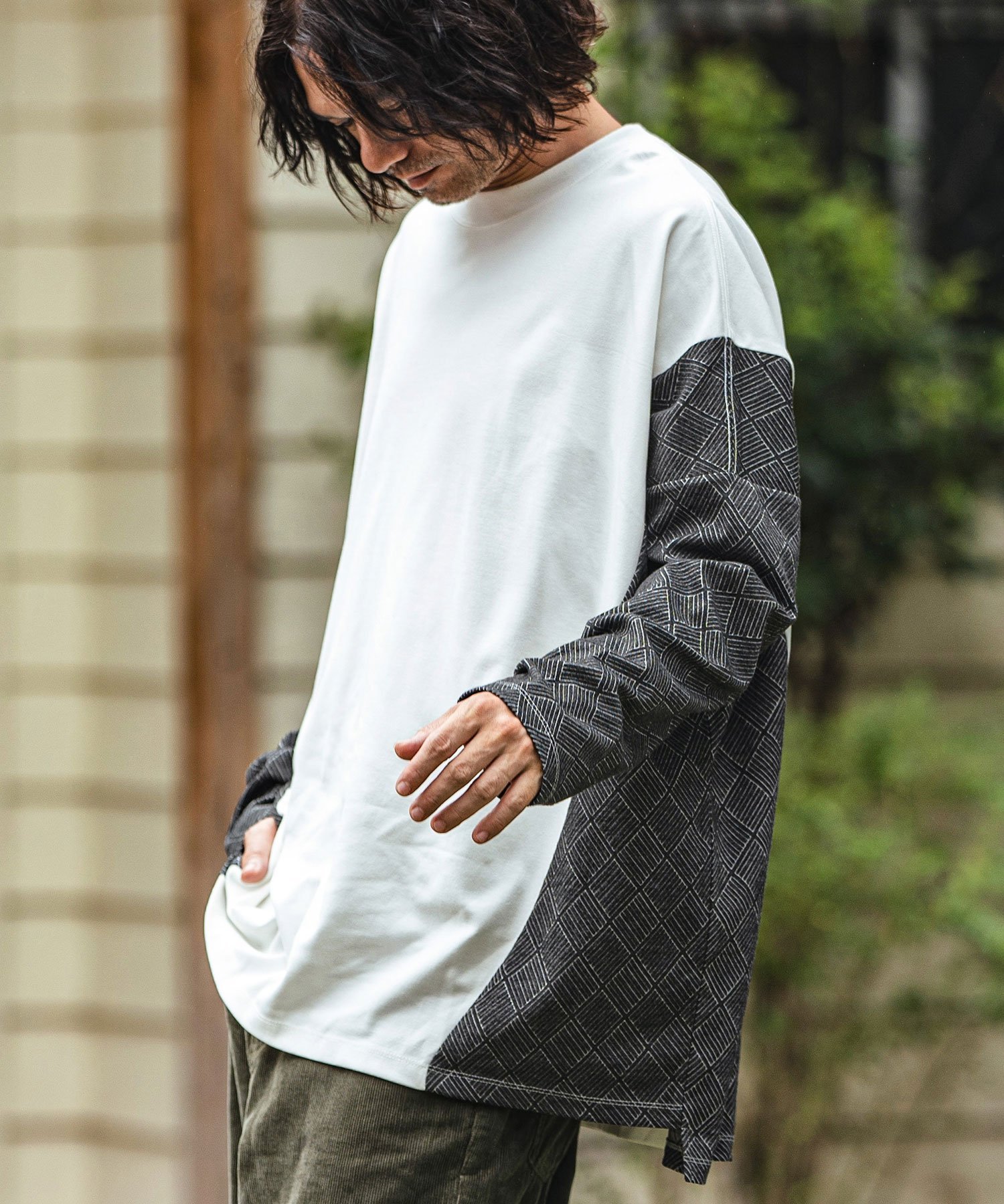 CAMBIO(カンビオ)mlt4953- Side Jacquard Long Sleeve Pullover カットソー175cmB90-W73-H89靴26.5cmのモデルがMサイズを着用。身頃サイドにジャガード生地で切替を施したインパクトデザインのロングスリーブTシャツです。無地箇所はポンチカットソーを使用、程良いハリがありしっかりとした肉感で型崩れしづらいカットソーです。マットな光沢感がありキレイな風合いです。幾何学調柄のジャガードカットソーを用いて身頃両サイドを切替デザインにしています。ボリューミーなスタイリングシルエットを演出するオーバーサイズシルエット仕上げです。※着用画像と商品単体画像で色が異なる場合がございます。※商品単体画像を実物により近づけております。型番:A36924cmb-a-s ND0742【採寸】Sサイズ/身幅:80cm 身丈:70/74cm 袖丈:46cm 肩幅:80cm Mサイズ/身幅:83cm 身丈:72/76cm 袖丈:47cm 肩幅:83cm Lサイズ/身幅:86cm 身丈:74/78cm 袖丈:48cm 肩幅:86cm 商品のサイズについて【商品詳細】素材:表地:レーヨン-62% ナイロン-33% ポリウレタン-5% 別布柄部分:ポリエステル-70% レーヨン-25% ポリウレタン-5%サイズ:S、M、L※画面上と実物では多少色具合が異なって見える場合もございます。ご了承ください。商品のカラーについて 【予約商品について】 ※「先行予約販売中」「予約販売中」をご注文の際は予約商品についてをご確認ください。■重要なお知らせ※ 当店では、ギフト配送サービス及びラッピングサービスを行っておりません。ラッピング・ギフト配送について同時に複数の商品を注文された場合メーカー希望小売価格についてご利用ガイドCAMBIO(カンビオ)mlt4953- Side Jacquard Long Sleeve Pullover カットソー175cmB90-W73-H89靴26.5cmのモデルがMサイズを着用。身頃サイドにジャガード生地で切替を施したインパクトデザインのロングスリーブTシャツです。無地箇所はポンチカットソーを使用、程良いハリがありしっかりとした肉感で型崩れしづらいカットソーです。マットな光沢感がありキレイな風合いです。幾何学調柄のジャガードカットソーを用いて身頃両サイドを切替デザインにしています。ボリューミーなスタイリングシルエットを演出するオーバーサイズシルエット仕上げです。※着用画像と商品単体画像で色が異なる場合がございます。※商品単体画像を実物により近づけております。型番:A36924cmb-a-s ND0742【採寸】Sサイズ/身幅:80cm 身丈:70/74cm 袖丈:46cm 肩幅:80cm Mサイズ/身幅:83cm 身丈:72/76cm 袖丈:47cm 肩幅:83cm Lサイズ/身幅:86cm 身丈:74/78cm 袖丈:48cm 肩幅:86cm 商品のサイズについて【商品詳細】素材:表地:レーヨン-62% ナイロン-33% ポリウレタン-5% 別布柄部分:ポリエステル-70% レーヨン-25% ポリウレタン-5%サイズ:S、M、L※画面上と実物では多少色具合が異なって見える場合もございます。ご了承ください。商品のカラーについて