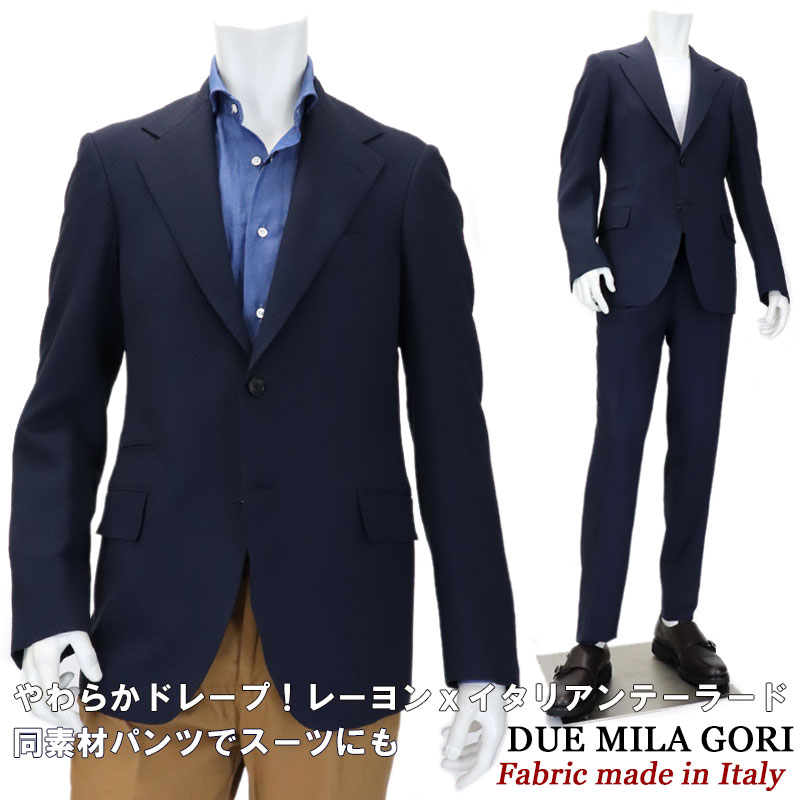 DUE MILA GORI ≪ドゥエミラゴリ≫ by I.J.I unit製 イタリア製生地 イタリアンテーラード やわらかなレーヨン ジャケット メンズ 春夏≪シングルジャケット ワイドラペル 80年代リファイン ビジネス カジュアル 紺 ネイビー≫【送料無料】73000-SWMB