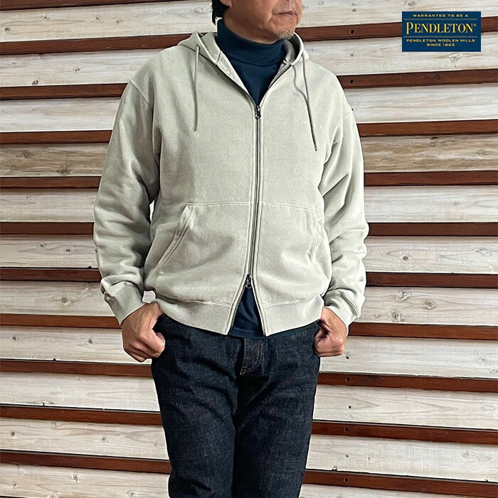 PENDLETON ペンドルトン ジップアップフーディ 【SALE】ピグメントダイ EMB ジップアップフーディ スウェットパーカ Charcoal Grege