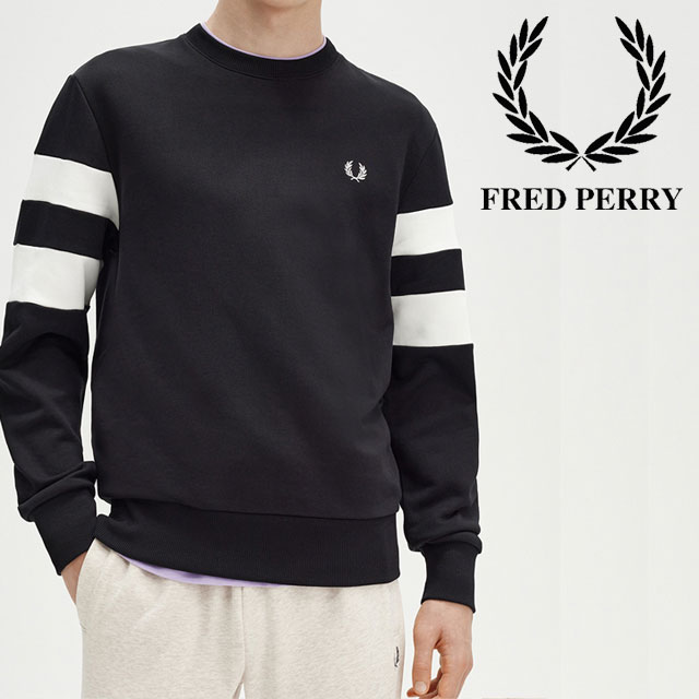 フレッドペリー スウェットシャツ メンズ M5544 トップス トレーナー 長袖 ライン ロゴ ワンポイント カジュアル スポーティ 刺繍 月桂樹 アパレル ウェア 服 ブラック 黒 送料無料 最強翌日配送 evid