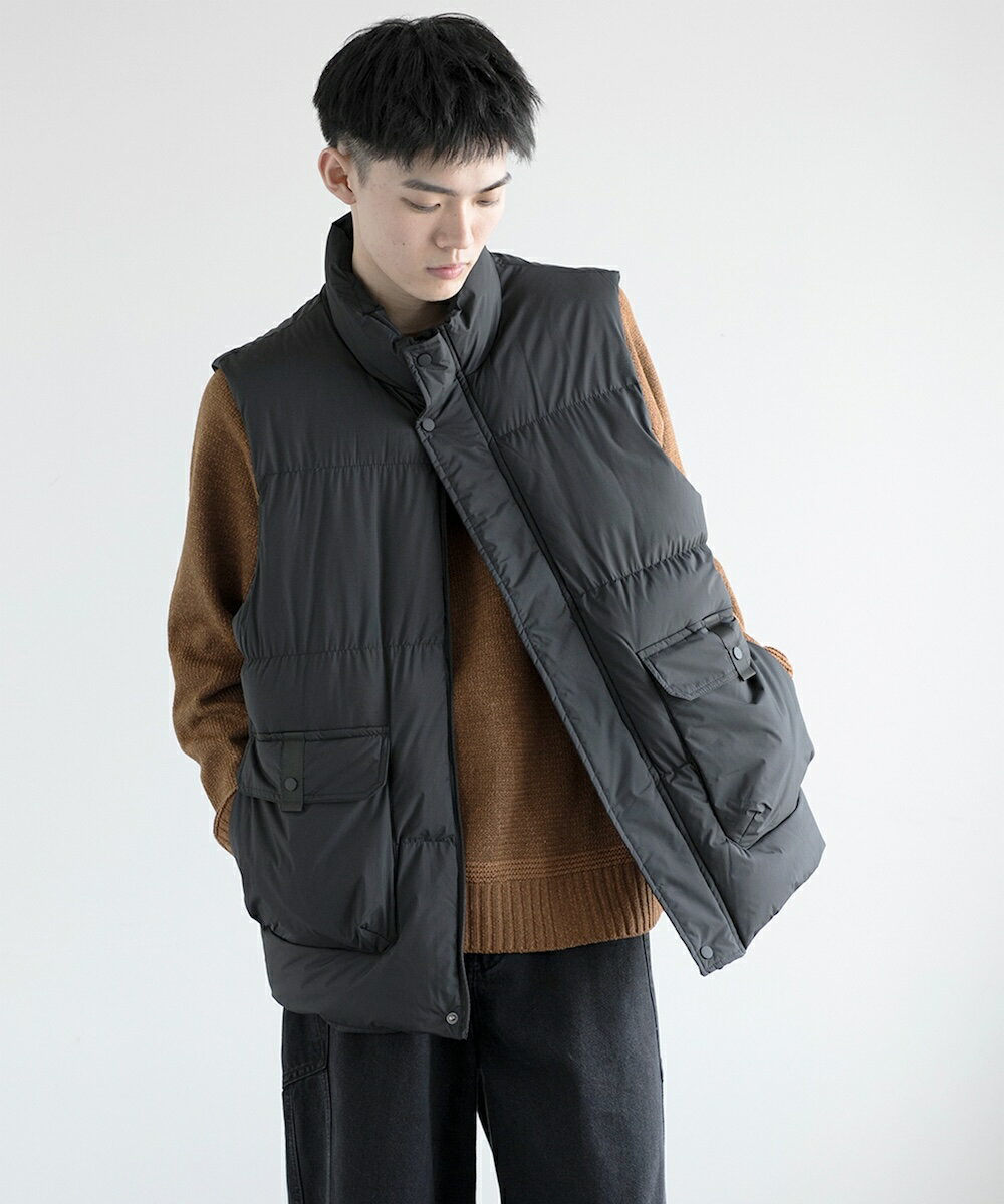 [型番:yey1036a]『ミニマルで機能的なデザインが特徴で、さまざまなコーディネートに取り入れやすい一枚です。』■MATERIAL透け感:なし裏地:あり伸縮性:なし光沢感:ややあり生地の厚さ:厚め■DESIGN*フロントには大容量のポケットが配置されており、アウトドアや旅行中の小物の収納に便利です。ミリタリー風のデザインが特徴で、カジュアルからストリートスタイルまで幅広いファッションにマッチします。シンプルなディテールながらも、今ぽく◎。*レイヤードスタイルにも対応でき、シャツやスウェット、ビッグシルエットのニットとの相性も良く、カジュアルなスタイルからストリートファッションまで幅広く活用できます。チノパンやデニム、ワイドパンツ、カーゴパンツなど、さまざまなボトムスとの相性も良く、多彩なスタイリングが楽しめます。■カラー:ブラック、グリーン、グレーMEDIUM:身幅54 着丈68LARGE:身幅56 着丈70X-LARGE:身幅57 着丈72XX-LARGE:身幅57 着丈72.5XXX-LARGE:身幅61 着丈75※( )で表記されている数字はヌードサイズです。ヌードサイズとは衣服を身につけない身体のサイズです。お客様ご自身の身体サイズと比較してお選びください。 ■素材: 表地 :ポリエステル100% 裏地:ポリエステル100% ■お手入: >>商品のお取り扱い方法 ■原産国: 中国aimoha men Explorer Vest/アイモハ(aimoha)ブラックグリーングレー画面上と実物では、多少色具合が異なって見える場合がございます。