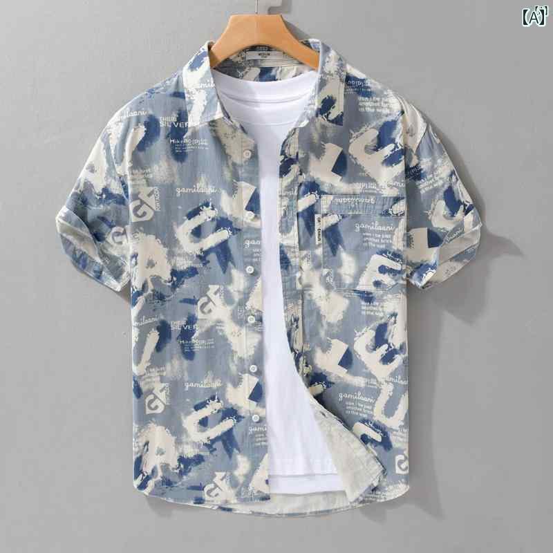 メンズ ファッション 韓国ファッション オシャレ 韓国 小柄 清新 文字 プリント 半袖 シャツ メンズ 文学 個性 夏 サイズ 服
