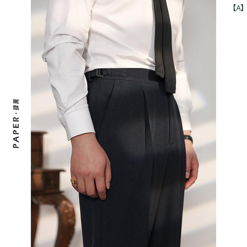 メンズ パンツ オフィス ビジネス カジュアル ダンディ 春夏 ネイビーブルー ハイウエスト ストレート ナポリ