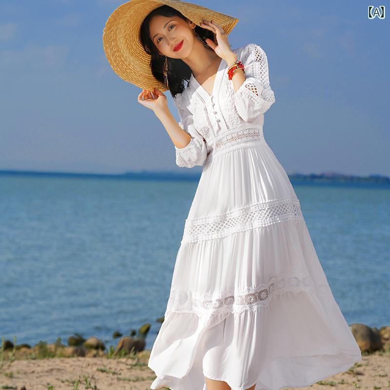 レディース リゾート ワンピース 着る 白い スーパー フェアリー ドレス 海辺 休暇 砂漠 旅行 写真 ビーチ