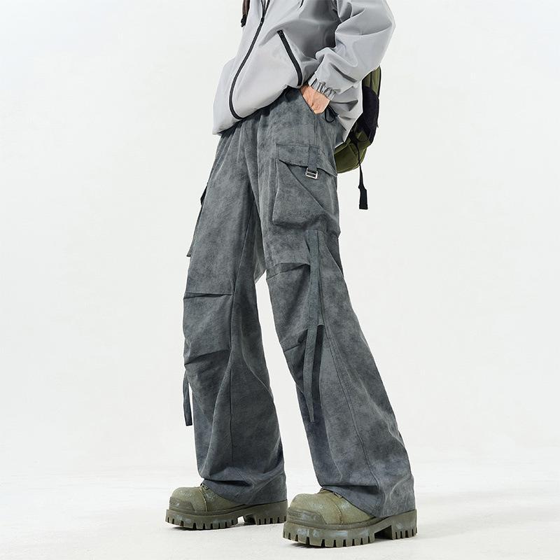 パンツ メンズ ワークパンツ 春秋 ズボン ゆったり ストレート ワイドレッグ カジュアルパンツ 大きめサイズ ホワイト ブラック グリーン