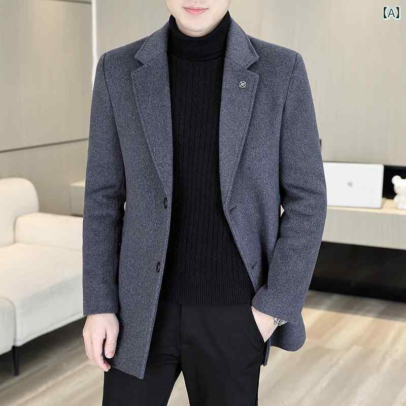 コート メンズ 男性用 秋冬 羊毛 ウール メルトン 厚手 ミドル丈 シングルブレスト テーラードカラー ゆったり オーバーサイズ 大きいサイズ ビッグサイズ 普段使い カジュアル アウター