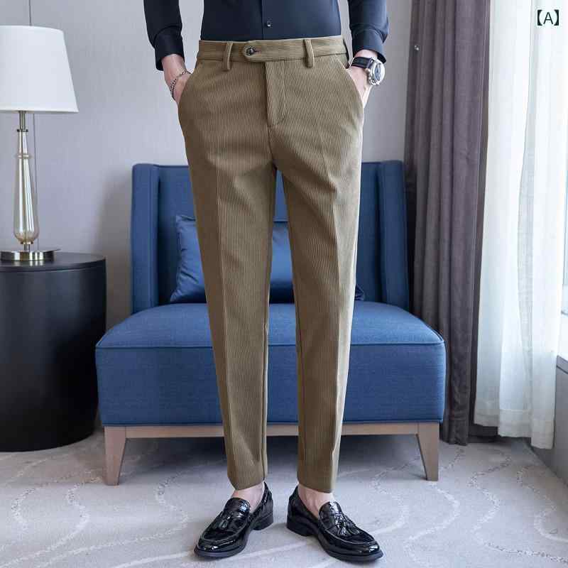 パンツ スラックス メンズ 秋冬 コーデュロイパンツ 厚手 ビジネス スーツ カジュアル スリム レギンス コーデュロイパンツ
