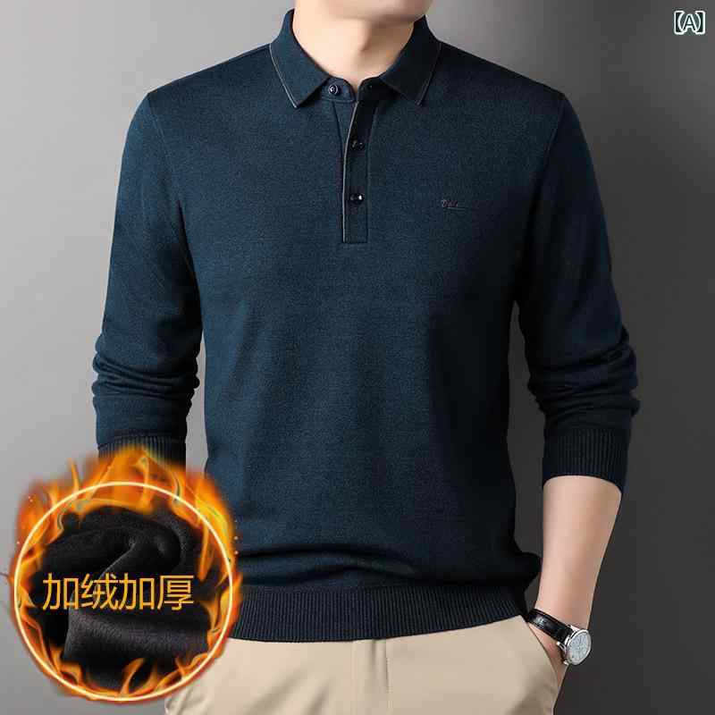 Tシャツ 男性用 長袖 裏起毛 襟付き プルオーバー カットソー トップス 無地 シンプル カジュアル 秋冬 普段使い