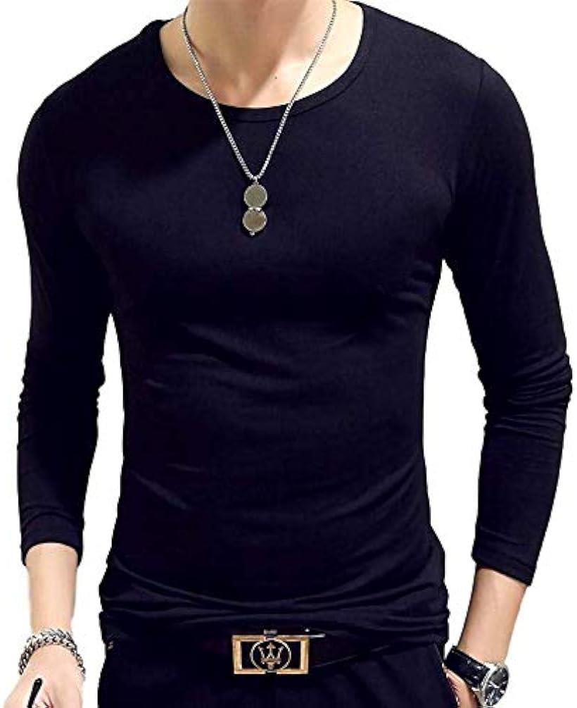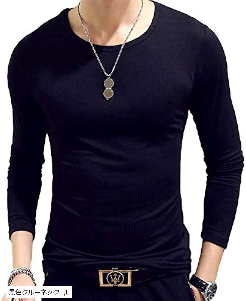 ストリート シンプル 長袖 インナーシャツ メンズ 長袖カットソー 透けない トップス クルーネック ロンt (黒色クルーネック, 02-L)