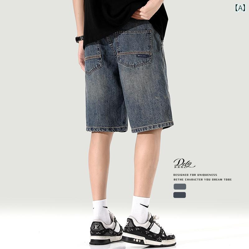 デニム ショートパンツ メンズ 高級 デニムショートパンツ メンズ 夏 薄手 2025 大きいサイズ 伸縮性 ゆったり アメリカン ワークウェア 5点 パンツ