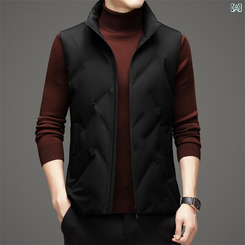 ダウンベスト メンズ 秋冬 シンプル ベーシック 保温 アウター 都市 カジュアル 日常 アウトドア 厚手 無地 フィット ポリエステル 白鴨ダウン 多ポケット スラントポケット ストレートヘム イージーケア 黒 カーキ