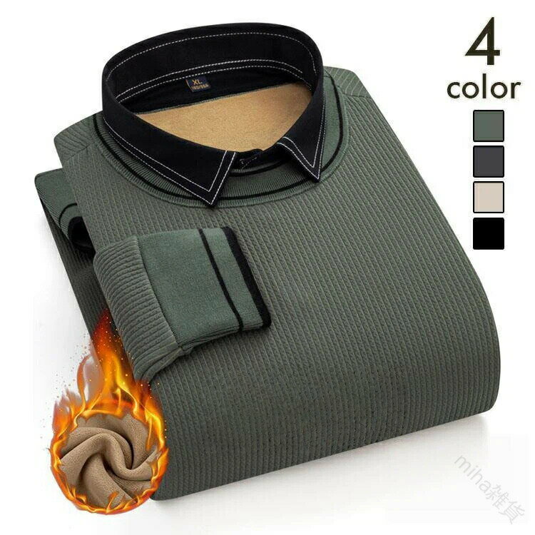 シャツ メンズ 長袖シャツ ワイシャツ メンズシャツ 起毛加工 プルオーバー カジュアル 冬用 厚手 保温性高い 偽2点風デザイン ワイシャツ風アウター おしゃれ着にも最適