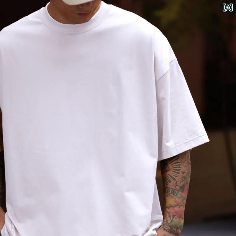 ロンT 無地 カットソー ヴィンテージ ヘビー 320 g 半袖 Tシャツ 男女兼用 ゆったり 白 ベース シャツ小 襟 厚手 透けない