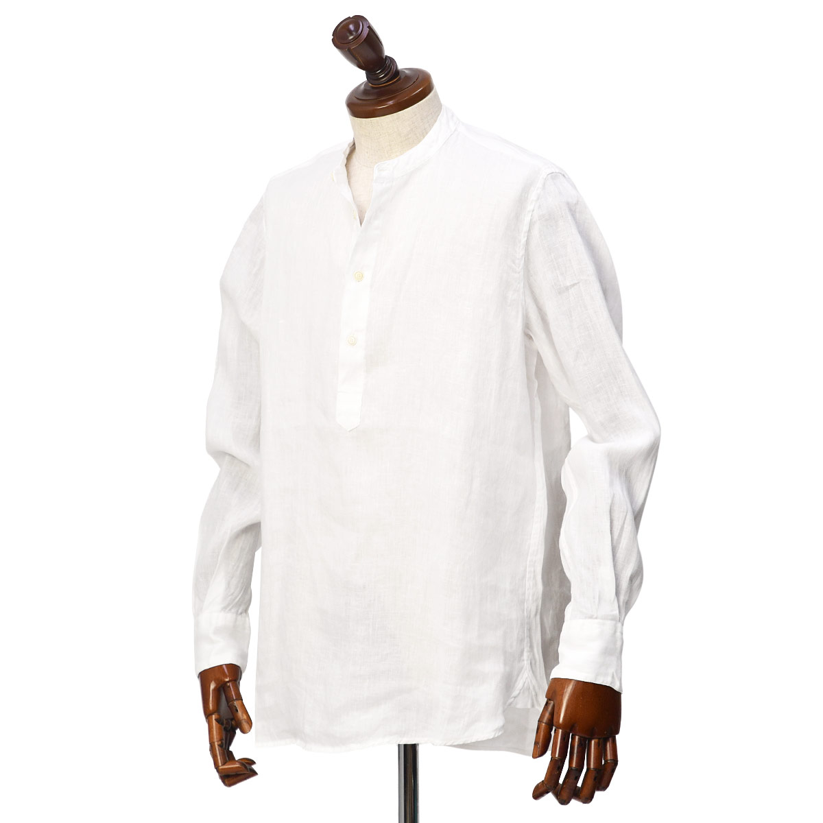 【FINAL SALE】【sizeM,L】Original Vintage Style【オリジナルヴィンテージスタイル】バンドカラープルオーバーシャツ DEPP413 BIANCO リネン 製品染め ホワイト