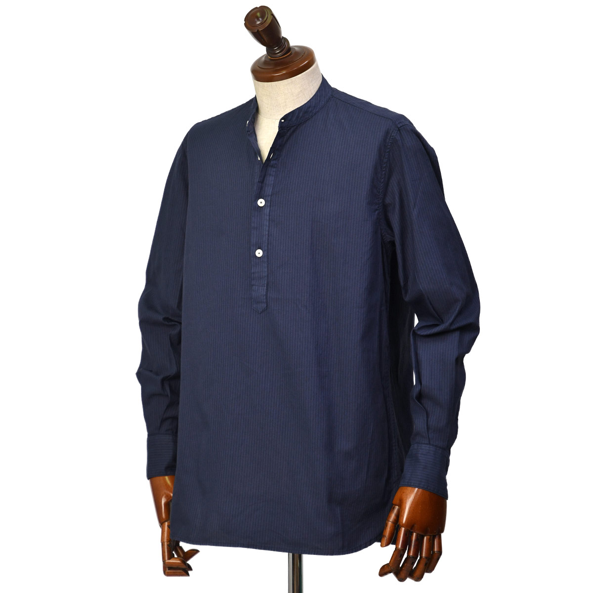【FINAL SALE】Original Vintage Style【オリジナルヴィンテージスタイル】バンドカラープルオーバーシャツ DEPP419 BLUE コットン 製品染め ネイビー×ブルー